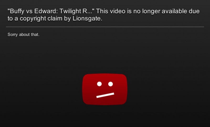 McIntosh wrote extensively about the hoops he then had to jump through in his blog in January 2013, including his enlistment of the pro bono assistance of a lawyer, but it was only after that post (and subsequent media attention) that “Buffy vs Edward” was back on YouTube. The final result here may be “no harm done” (excepting of course the unnecessary time and stress for McIntosh), but this situation makes you wonder: For every Jonathan McIntosh who knows a great deal about the law and is willing to fight to keep his work online, how many others out there have simply taken their work down and deprived that community of their creativity?